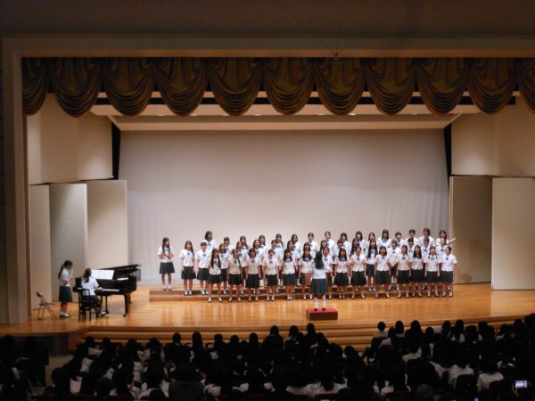 中学の部では全クラス演奏後、全員で『夢の世界を』を合唱しました。