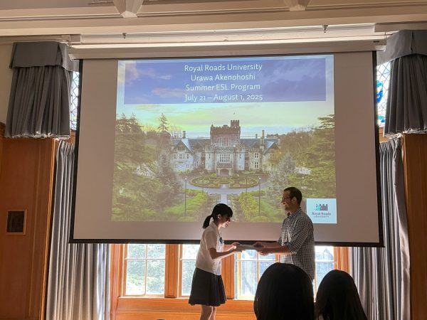 受賞クラスは校長先生から賞状とトロフィーを受け取ります。
