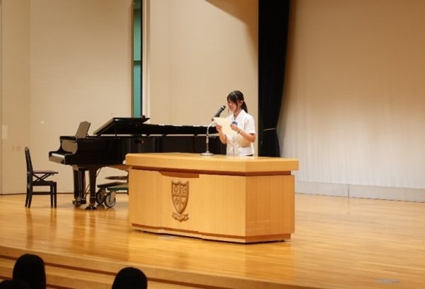 「今日一日でたくさんの嬉しいという気持ちや楽しい、悔しいなど様々な感情を味わったと思います。このような感情を味わうことができたのは、今日一日のこのスポーツデーのためにたくさん努力し、練習してきたからだと思います。そして、楽しいスポーツデーにすることができたのはクラスで団結し、一つになることができたから、学年を越えて学校全体で絆を深められたからだと思います。実際に私も今日のスポーツデーの様子を見ていて、互いに励まし合ったり、応援し合ったりする姿を見ることができて、本当に心があたたかくなりました。『正・浄・和』を大切にしている明の星ならではの雰囲気、明の星らしい素敵なスポーツデーだったと思います。こんなにも素敵なスポーツデーをつくり上げることができたのは皆さん一人ひとりのお陰です。」