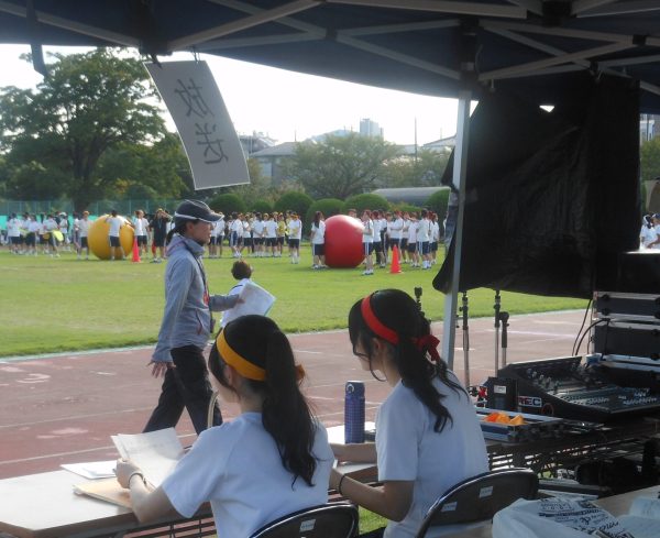 放送部による実況。クラスごとのエピソードも盛り込みます。