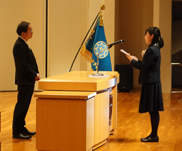学校長からの式辞に応えるようにして続く、新入生代表による誓いの言葉。