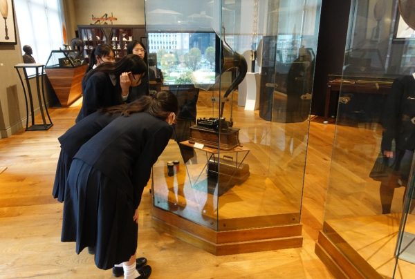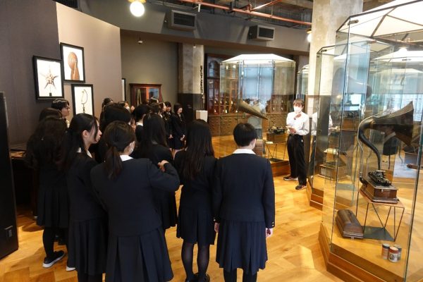 2階の展示室では、さまざまな時代の蓄音機を観察しながらその特徴について考えました。