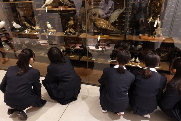 「鳥と他の動物との違いを意識しながら、このあたりの標本を観察してみて下さい。」