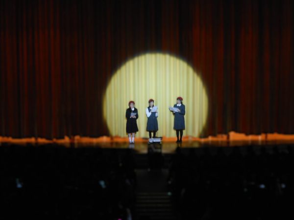中高6学年がホールに集い、各部活動が新入生のために一生懸命に準備した発表を楽しみました。